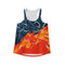 Unleash your inner energy and confidence with the Women's Abstract Graphic Racerback Tank Top, designed for style, comfort, and performance. Featuring a vibrant abstract print with striking shades of navy blue, orange, and red, this tank top is perfect for women who love to make a bold fashion statement in their workouts or casual wear.