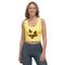 Let your style take flight with the Women's Butterfly Print Crop Tank Top. Designed in a cheerful sunny yellow, this top features two elegant monarch butterflies in motion—symbolizing transformation, freedom, and natural beauty. Whether you're out enjoying a summer day, relaxing with friends, or hitting a yoga session, this crop tank adds a light, uplifting vibe to your look.